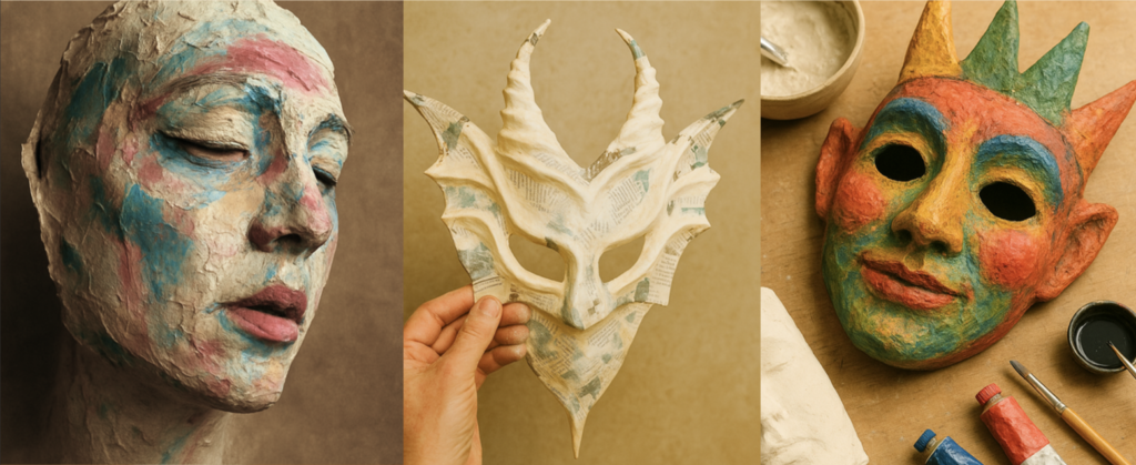 - Modellieren einer eigenen Papiermaché-Maske (Form, Charakter, Ausdruck)
